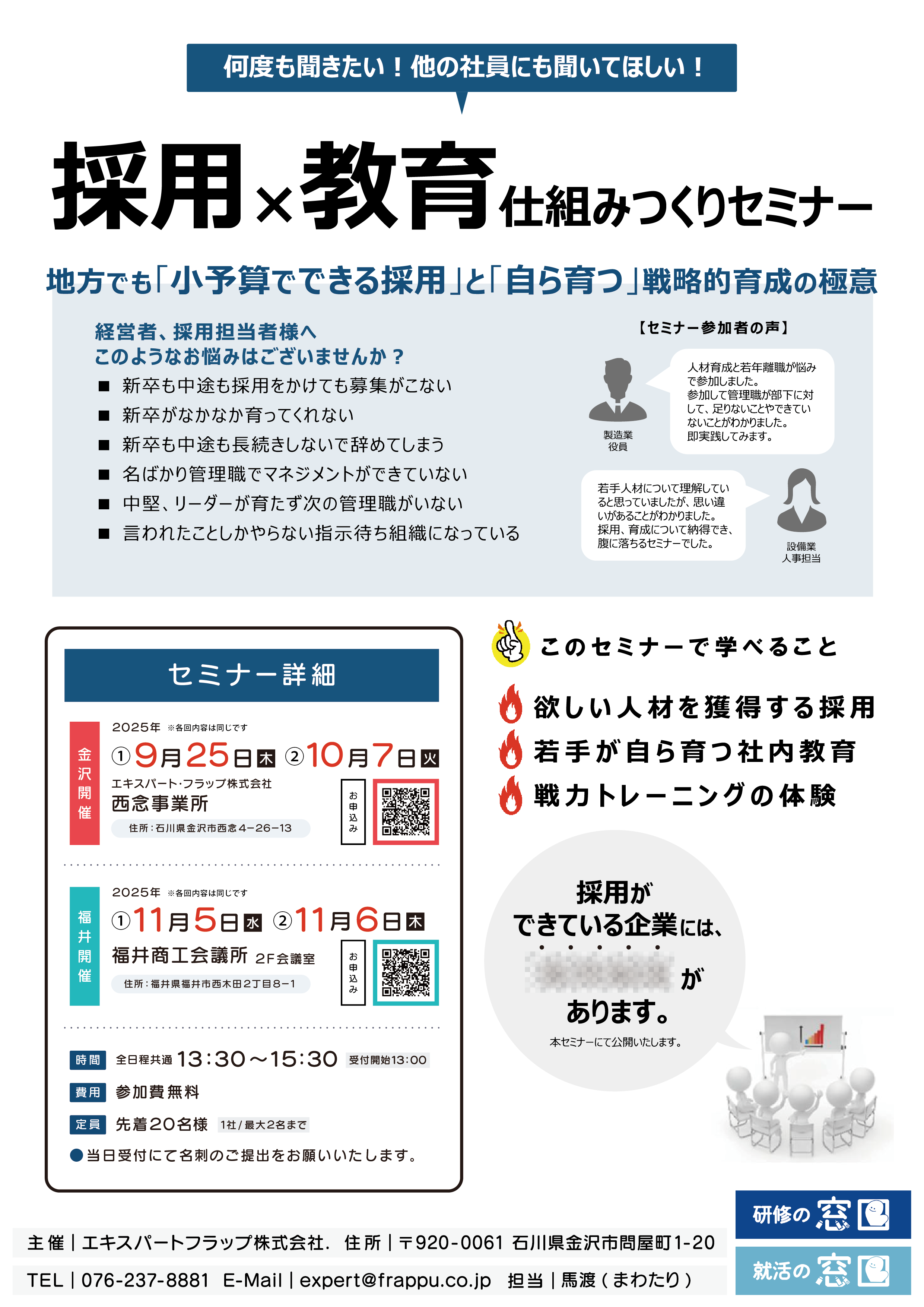 【募集】採用×教育 仕組みつくりセミナー 金沢開催・福井開催のご案内
